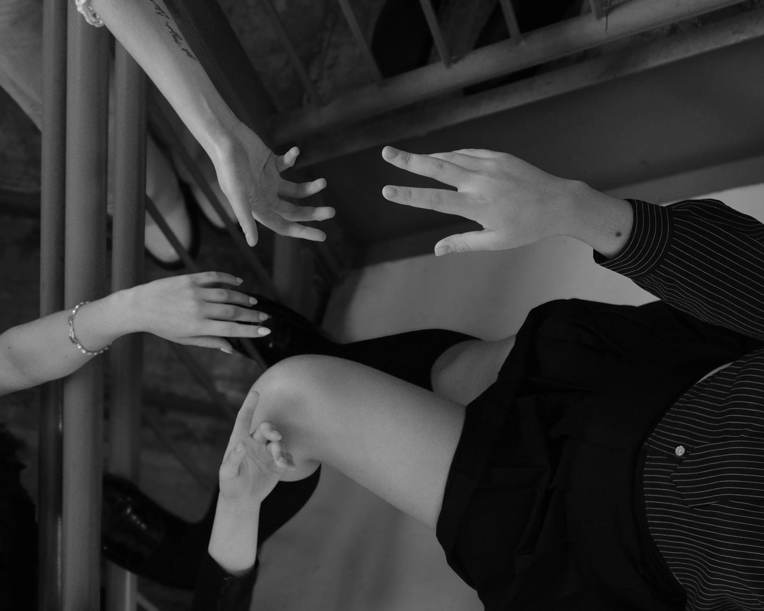 “Spiraling” aims to depict feelings of anxiety and hopelessness when battling against your own mind. The imagery of a spiral staircase inspired this shoot, as the visual serves as a representation of how one might spiral in these feelings, ending up trapped at the bottom of a deep hole, or in this case, the basement floor of a very tall building.