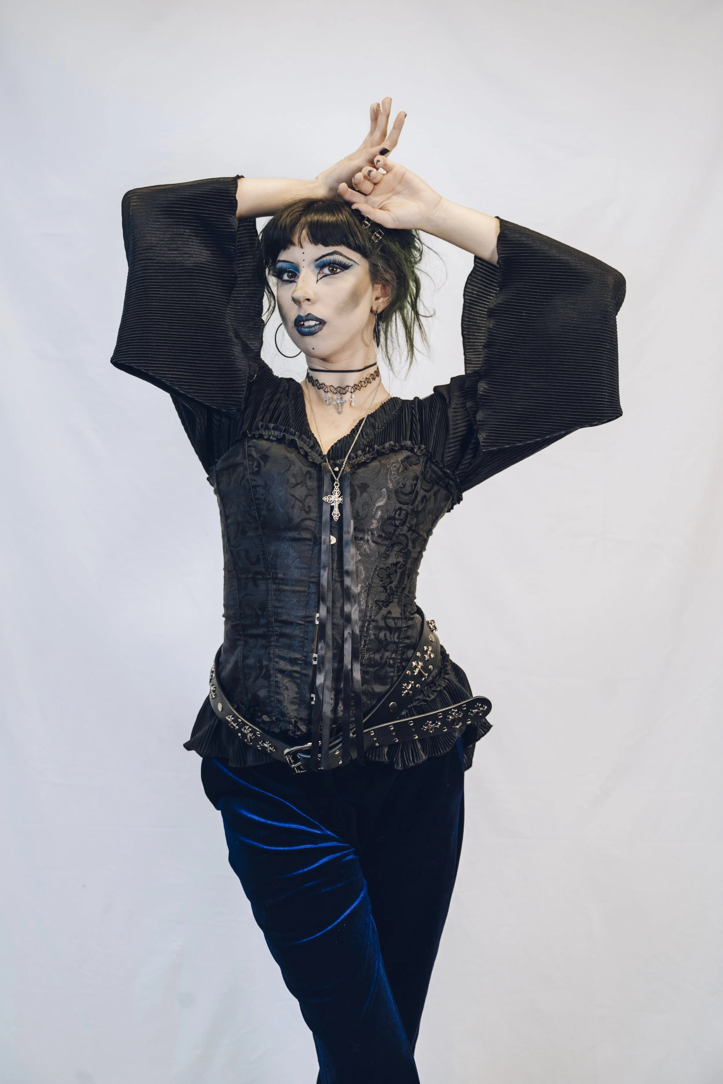 Inspired by the works of Picasso’s blue period, “& the banshees” draws from trad goth subculture to subvert expectations and express the deep rotted emotional core of these works. Pulling from ideas of the melancholy and social isolation is Picasso’s art, this shoot balances the grandiose and exaggerative elements of gothic fashion and makeup with the nature of the outcast.