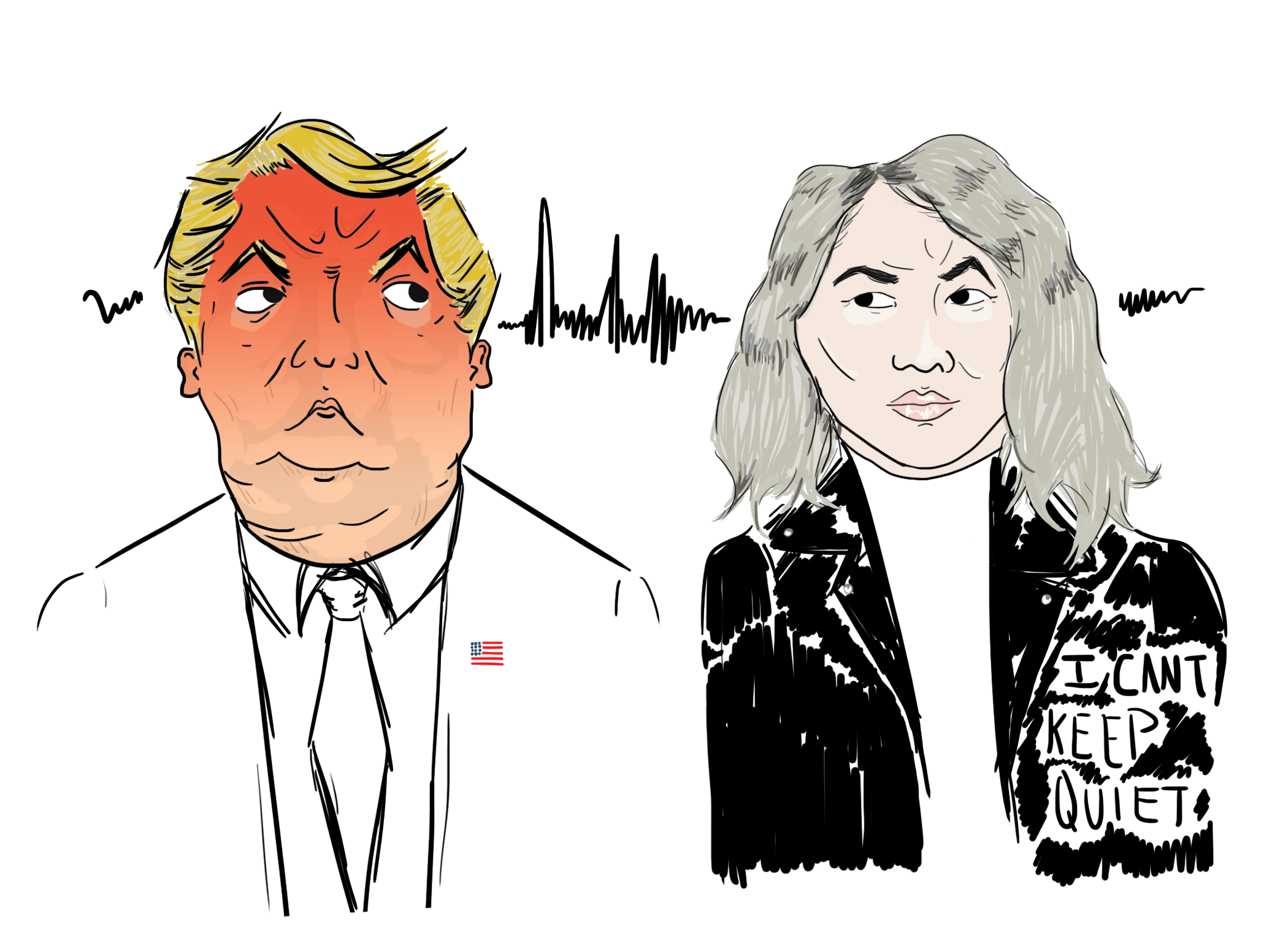 Connie Lim, also known as MILCK, went viral after performing her song “Quiet” alongside over twenty other women at the Women’s March in Washington, D.C, one day after Trump’s presidential inauguration. “Quiet” became somewhat of a theme song for subsequent women’s marches. According to past interviews with Lim, the song itself started as a way to express herself in coming to terms with past abuse she faced. She made note that she was ready to release the song with the election of Donald Trump as president. She was overwhelmed by the election results and believed in the song she had created in the past as a tool for the present and future. The piece has been strong example of togetherness for those who have felt threatened by the president’s misogynistic, abusive language and actions.